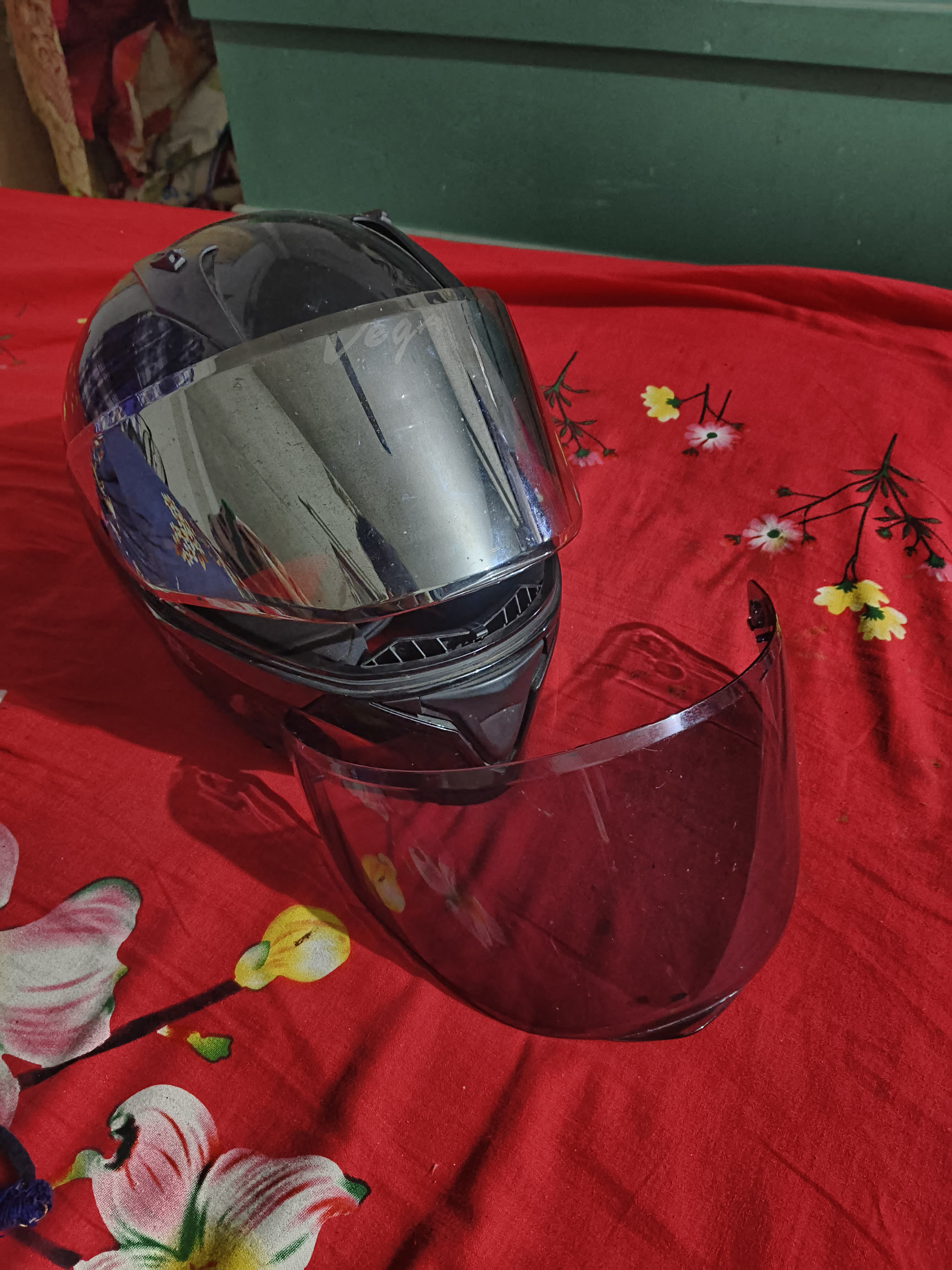 Vega bolt glossy black helmet with extra black visor
